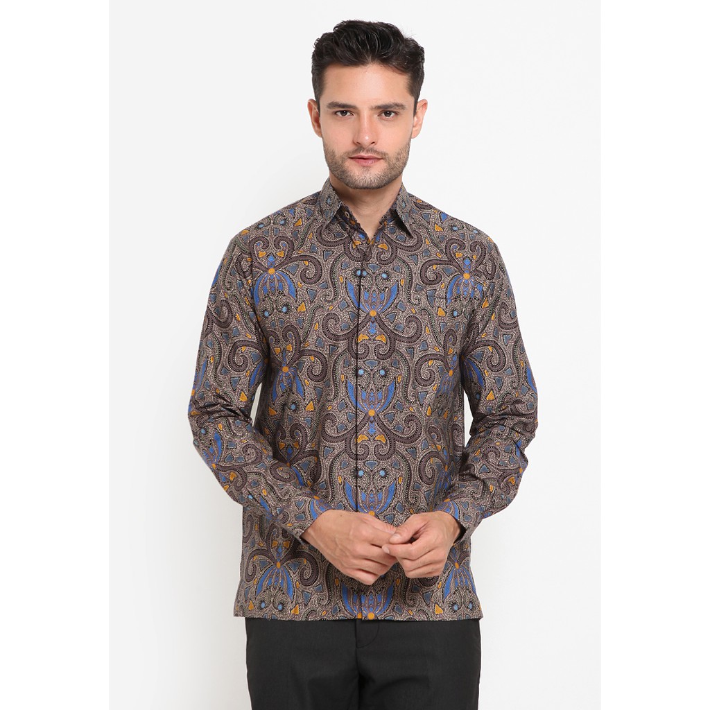 Agen Pakaian di Kabupaten Manggarai Timur Praja Batik Omprakash - Kemeja Batik Pria Lengan Panjang Abu2 Reguler Fit dari Praja Batik Kab. Tangerang