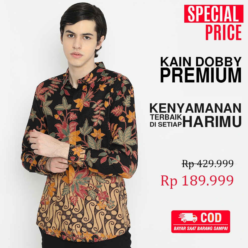 Name: Kemeja Batik Panjang Slimfit Premium Dobby Dby Dobi Dobbi Parang Merah Kuning Hitam 723897 Cap 72