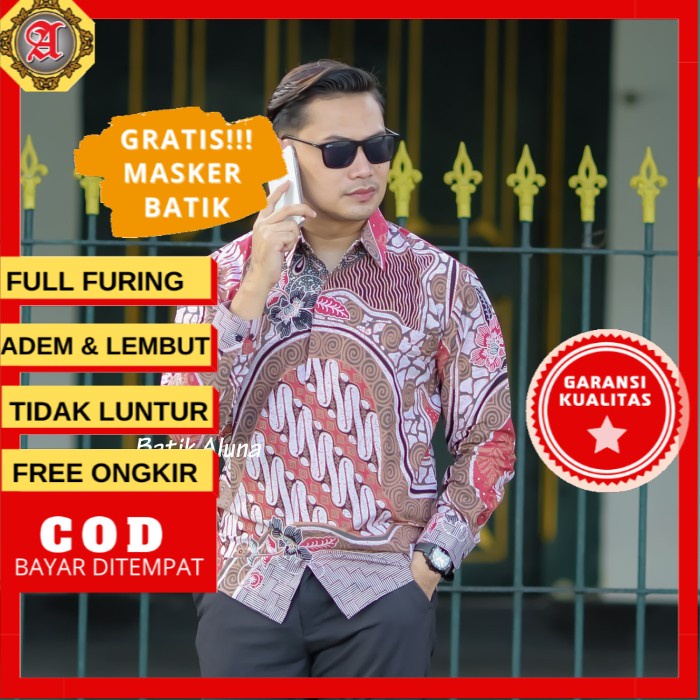BATIK PRIA PREMIUM LENGAN PANJANG KODE PRODUK ABB 017 FREE MASKER