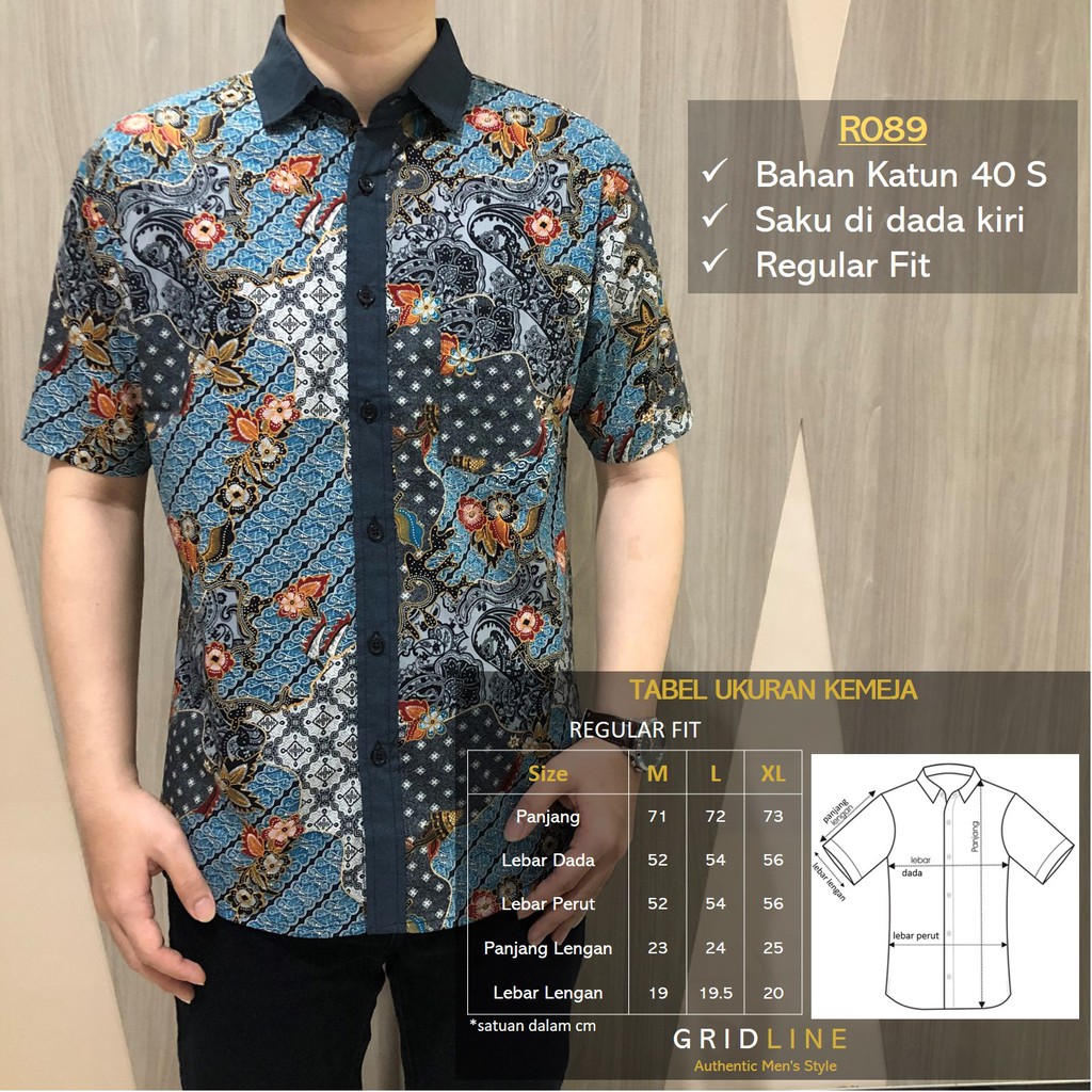 Name: [gridline - R089 Blue] Kemeja Batik Pria Katun Lengan Pendek Regular Modern