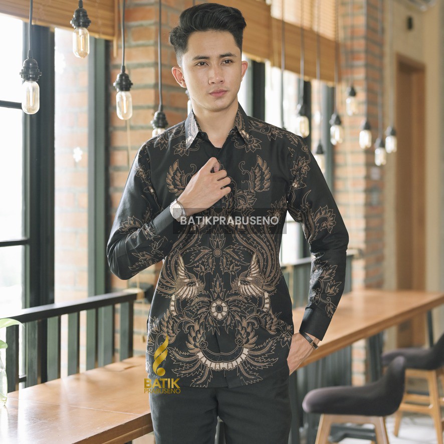 Produsen Pakaian di Kabupaten Sikka Wirasana Kemeja Batik Pria Lengan Panjang Slimfit Katun Printing Hem Baju Seragam Kantor Modern dari Batik Prabuseno Official Kota Surakarta (solo)